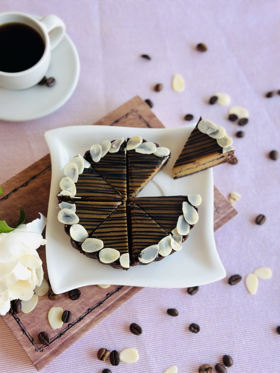 Sastojci: indijski orah, kokosov šećer*, espresso kafa, badem, kakao puter, kokosovo ulje*, čokolada* (70% kakao delova, sa kokosovim šećerom), kakao prah*, limunov sok, ovsene pahljice*, badem listići, kokosovo brašno*, tamari, probiotik.